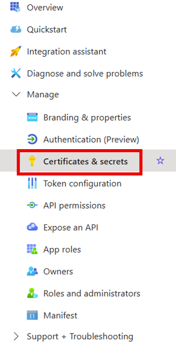 Step 7: Navigate to Certificates & Secrets