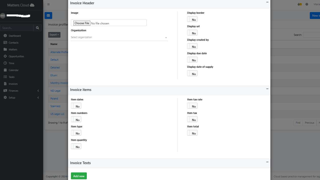 Alternate Profile: Option to select or link to another invoice profile as an alternative for specific matters.