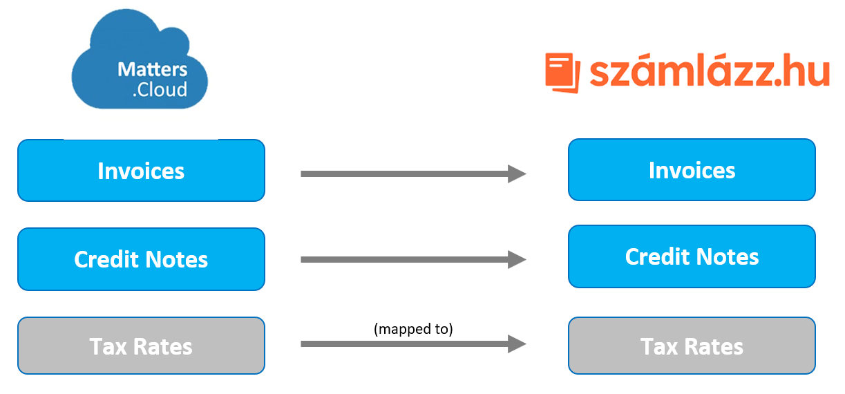 - Export Invoices from Matters.Cloud to create Invoices in Szamlazz.